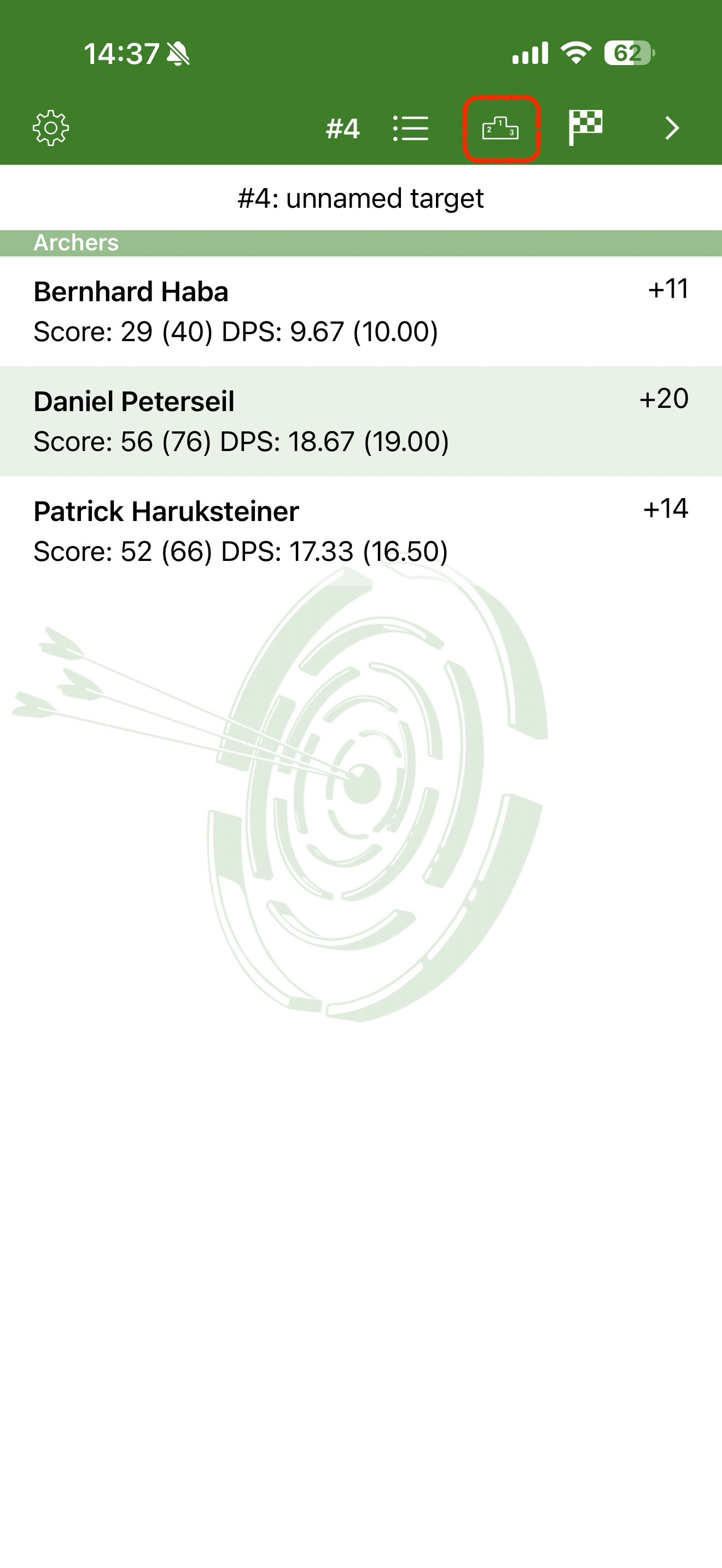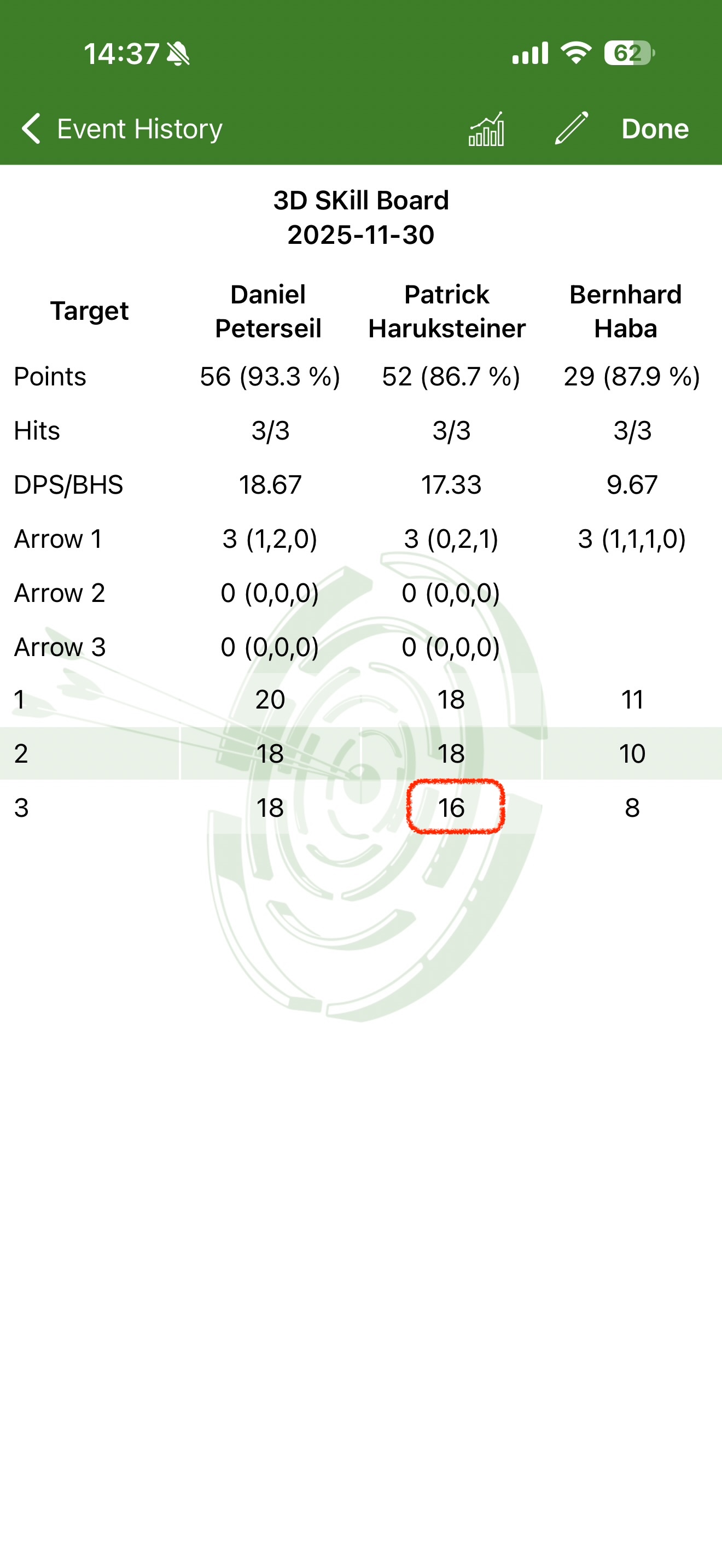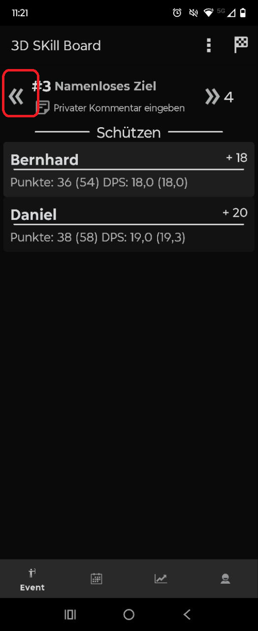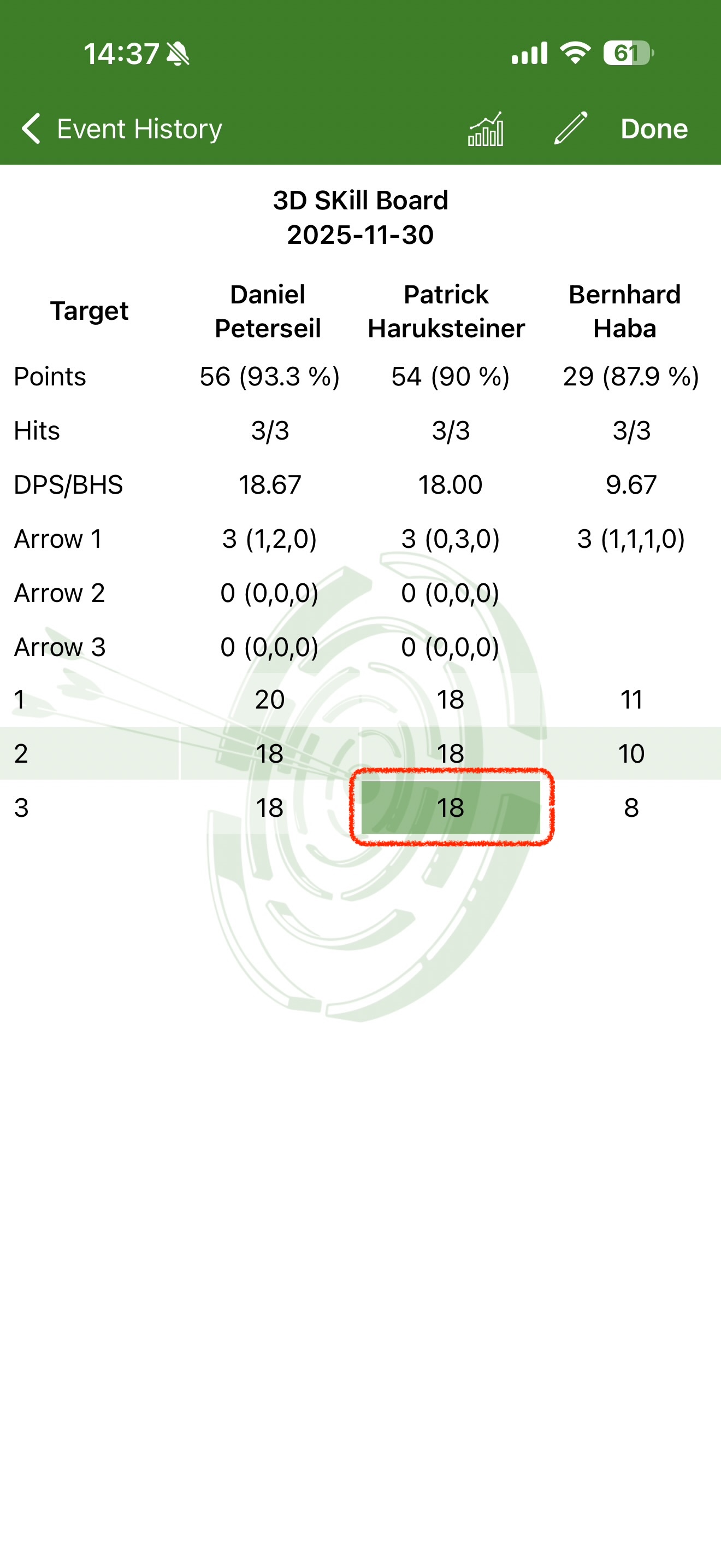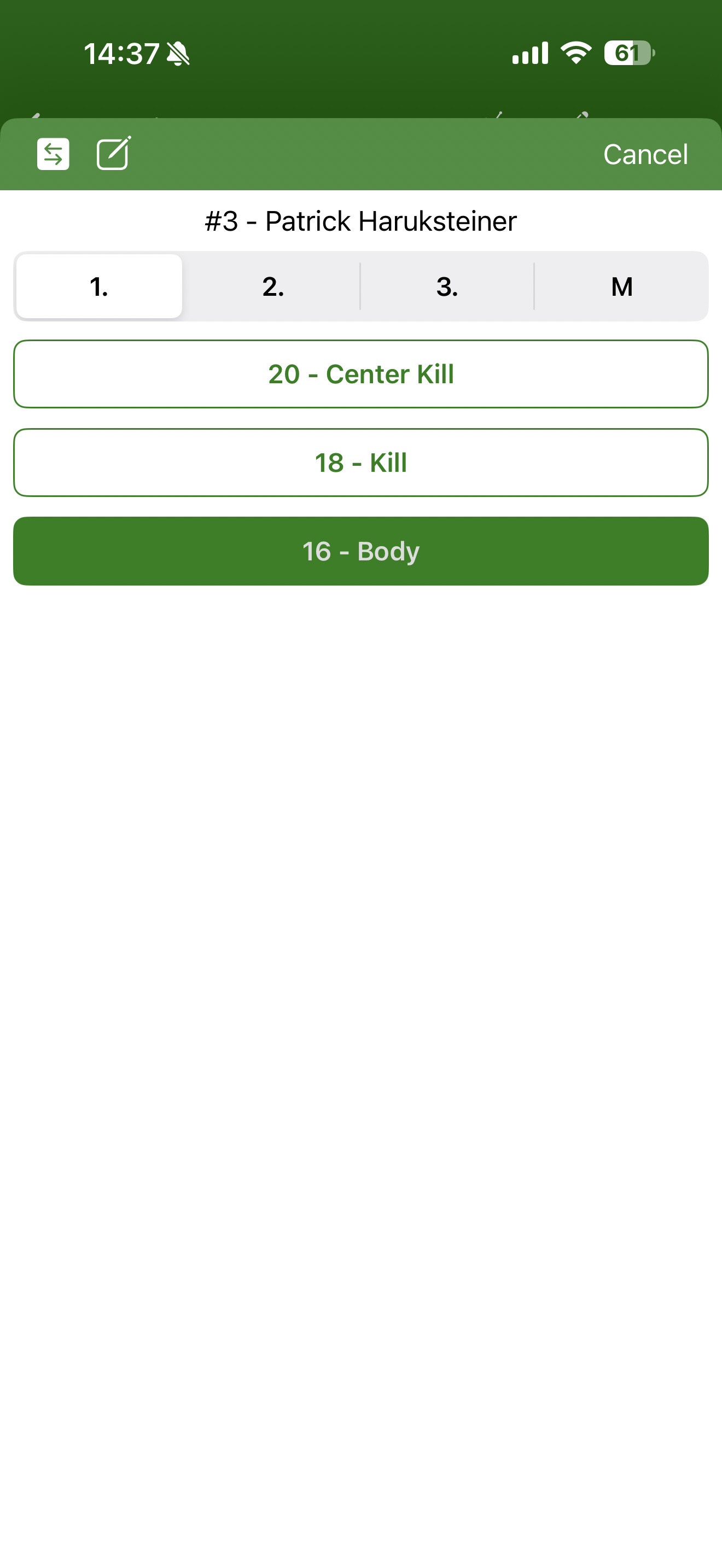Über das Menü zu der Ergebnistabelle wechseln und mit einem "langem" Klick auf die Punkte in der Ergebnistabelle erscheint nochmals das Treffer Popup um die Punkte zu ändern. Die geänderten Punkte werden danach im Ergebnis hervorgehoben.